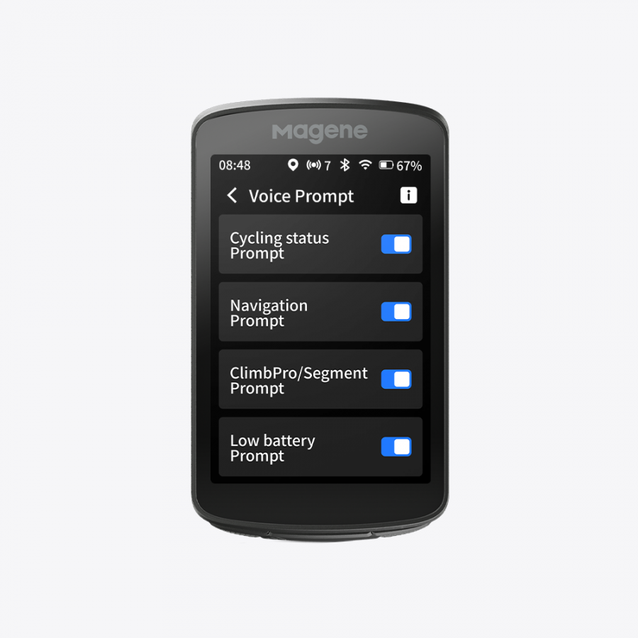 Hear your directions and stay informed—without looking down. The C706 smart GPS bike computer features a built-in high-power miniature speaker that delivers clear voice alerts for navigation prompts, lap announcements, ride status, segment/climb notifications, low battery warnings for the bike computer or sensors, and key data readouts. No phone required—just accurate, audible cues that let you keep your eyes on the road and ride safer.