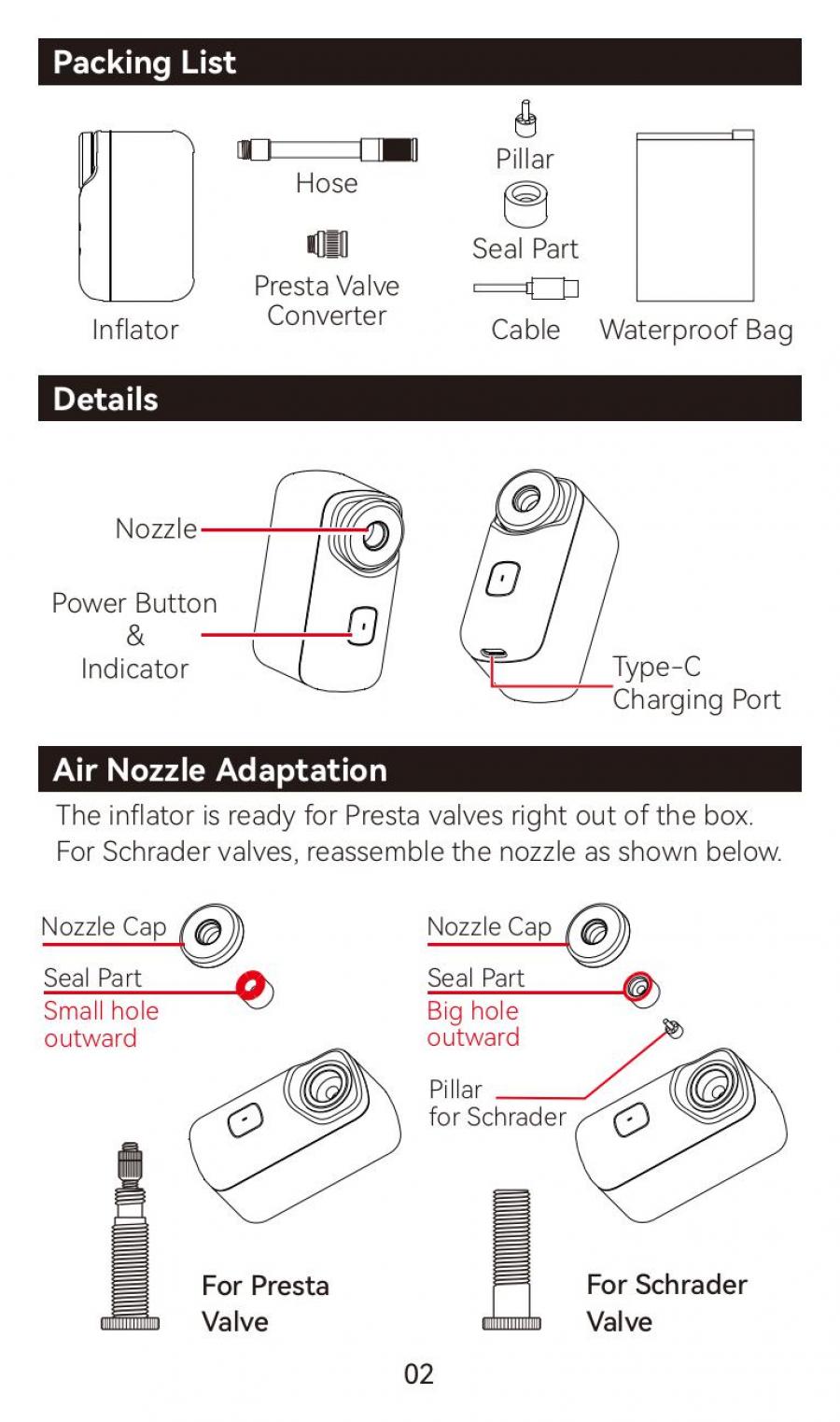 Our mini bike pumps are compatible with Schrader and Presta valves for different types of bicycle tires, without the need for additional adapters or head swaps.
