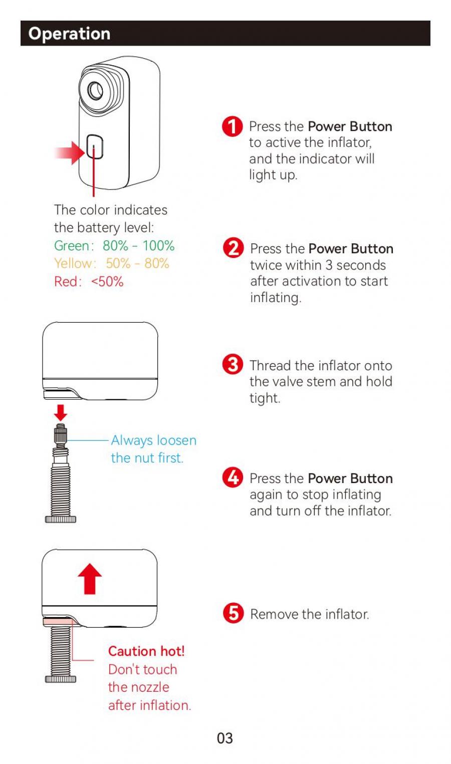 Note-1 - When the target air pressure is above 100 PSl, please use pump with the hose to prevent air leakage from the nozzle.